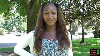 Smoking stockinged dark-hued shemale wanks