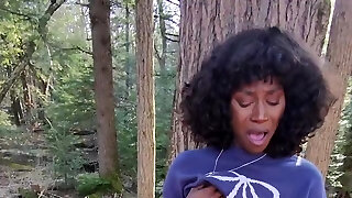 POV Hot Ebony Trans Sucks a Dick In The Woods