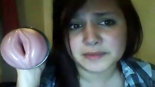 Curvy Ts Giovana Portylla Jerks off and Cums Inside a Mechanical Pussy